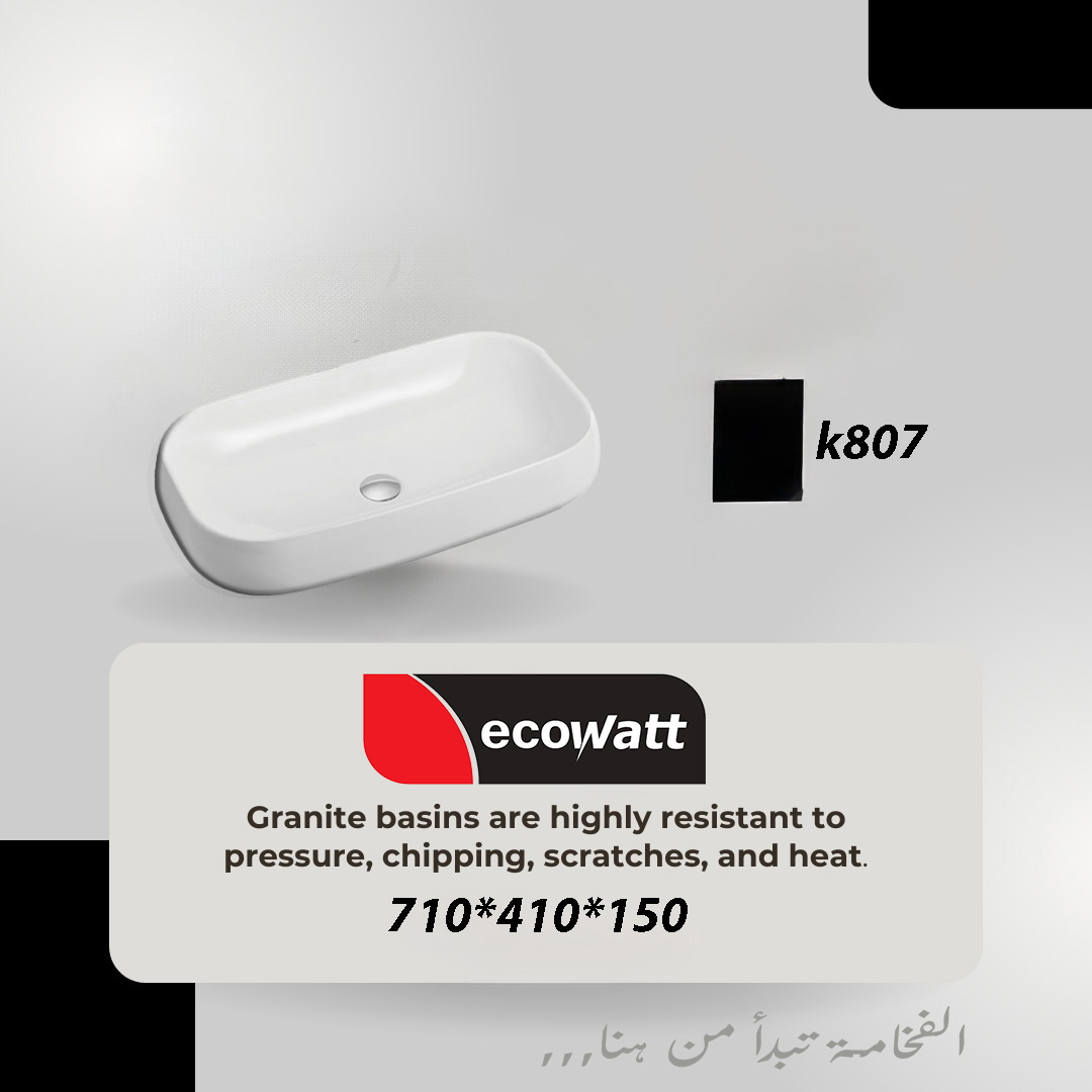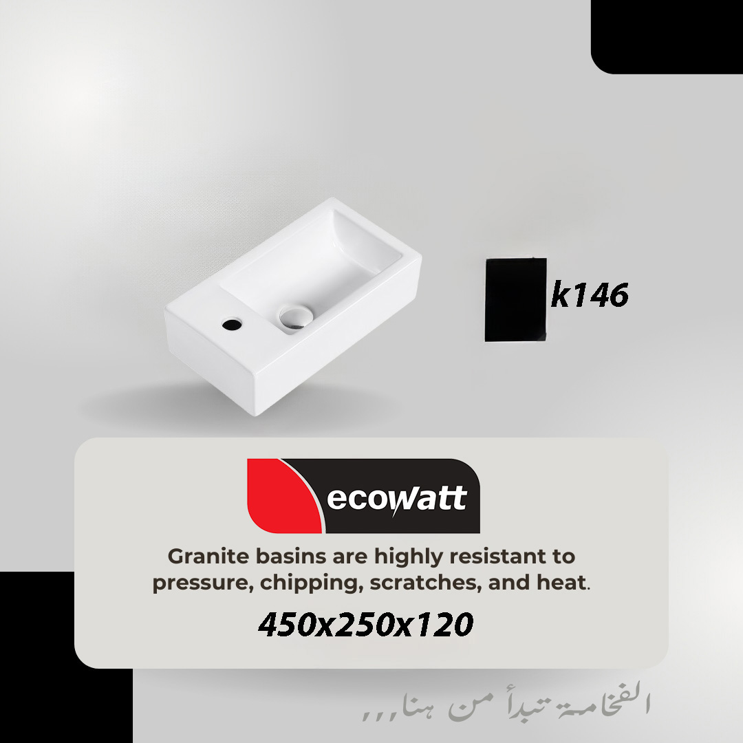 يصنع الجسم الرئيسي لمغسلة ايكوواط Ecowatt من مزيج من المواد الصلبة، مما يجعلها متينة وتدوم طويلاً. كما أنها مصنوعة من مواد ضد البكتيريا، مما يساهم في الحفاظ على نظافة وصحة عامة في الحمام.
